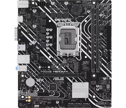 לוח אם למעבד אינטל מבית Asus דגם PRIME H610M-K ערכת שבבים H610 בעל תושבת 1700 מסוג Micro ATX הכולל יציאות HDMI, VGA וחיבורי USB 2.0, USB3.2