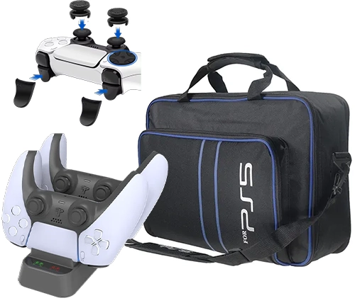 ערכת הטבה ברכישה של PS5 – תיק, תחנת טעינה לשלטים וערכת כפתורים לשלט – סכום כלל המוצרים לפני הנחה 273 ש''ח