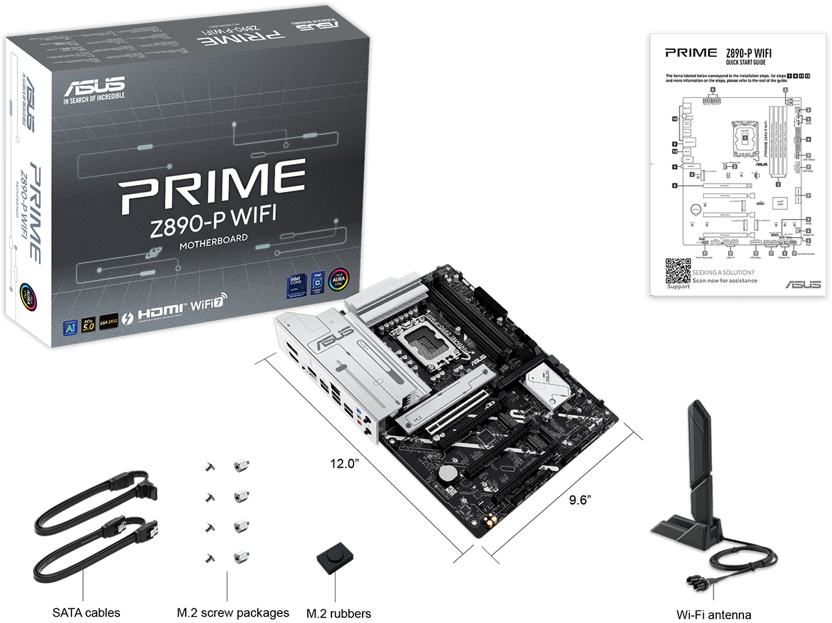 לוח אם Asus PRIME Z890-P WIFI, ערכת שבבים Z890, תושבת 1851 למעבדי Intel Core Ultra דור 2, קישוריות Wi-Fi 7 ו-Bluetooth 5.4, כרטיס רשת קווי Realtek 2.5Gb Ethernet, חיבורי Thunderbolt 4 ו- USB 3.2 10Gbps