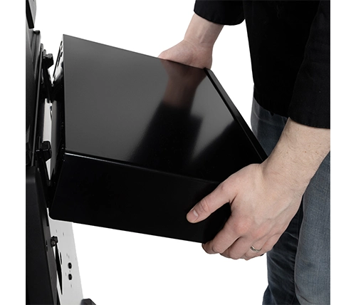 ארבעה גלגלים עם מנגנון נעילה פשוט לתפעול, שני מדפים רחבים למגשי אוכל עם ווים לכל כלי הבישול שתרצו לתלות עליהם. ובסוף הבישול – מדפי הצד מתקפלים בקלות, אפשר לפתוח את נעילת הגלגלים ולאחסן את הגריל במקום הנוח לכם. לכיסוי מקורי אנחנו כבר דאגנו לכם.