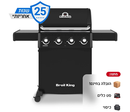 גריל גז 4 מבערים Broil King Crown 410 40,000BTU בצבע שחור - משלוח חינם + מתנה
