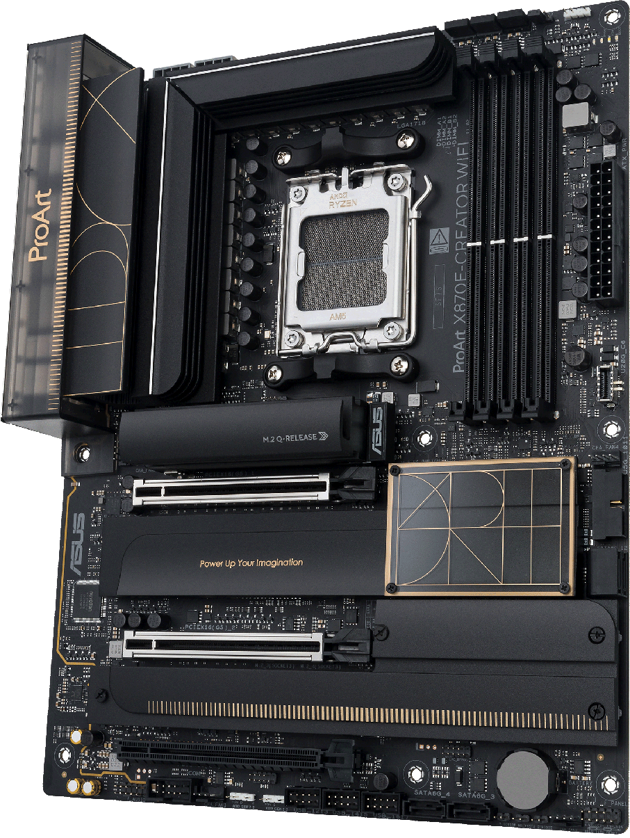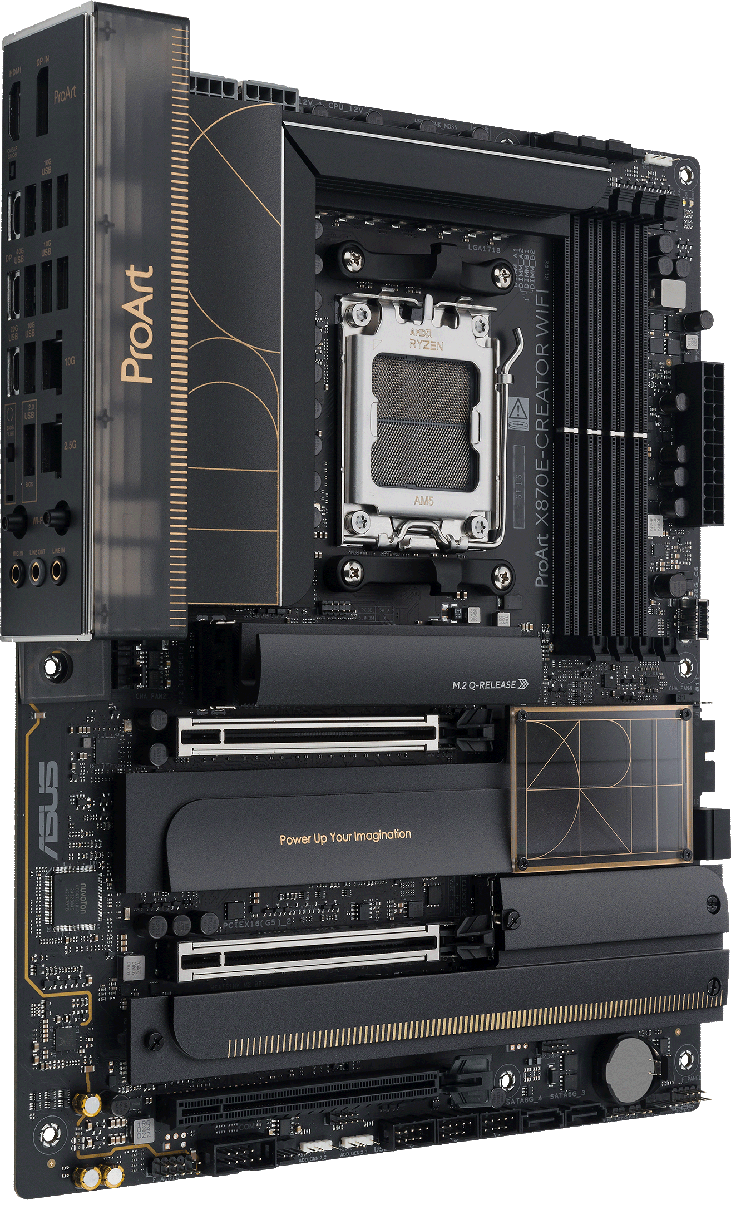 לוח אם Asus ProArt X870E-CREATOR WIFI, ערכת שבבים X870E, תושבת מעבד AM5, כולל קישוריות אלחוטית Wi-Fi 7 ו-Bluetooth 5.4, כולל 2 כניסות רשת קווית Marvell 10Gb ו-Intel 2.5Gb, חיבורים USB-C 4.0 ו-USB 3.2 Gen2