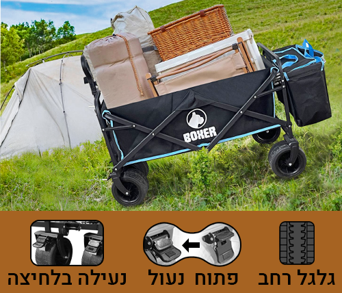 העגלה גם מתאימה לנשיאת ציוד מהרכב לאוהל, חוף הים, טיולים, בגינה, קניות ועוד.