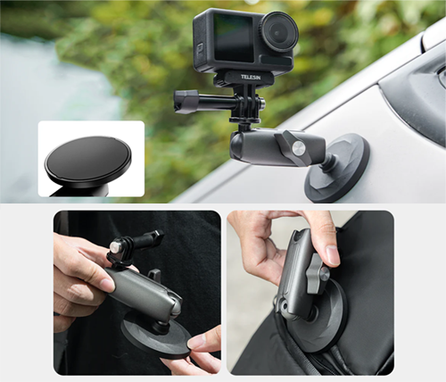 תושבת מגנטית למצלמת אקסטרים וסמארטפונים TELESIN CMM-001 עם תושבת 3 Prong ו 1/4