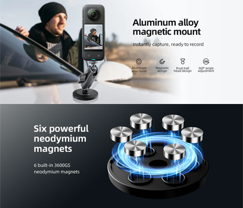 התושבת המגנטית מתאימה למגוון מצלמות אקסטרים כגון, GOPRO ,Insta360 ,DJI ,Akaso מצלמות דיגיטליות קלות משקל, סמארטפונים ועוד.