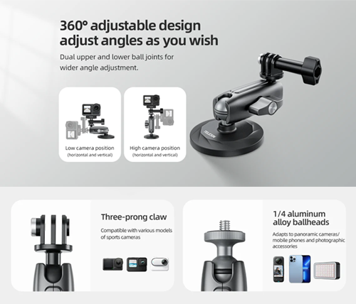 התאמת זווית ב- 360° מעלות. כמו כן, ניתן להתאים את הזווית לפי צורכי צילום שונים.