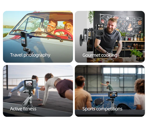 תוכלו להצמיד את התושבת המגנטית למגוון משטחים מתכתיים או להעמיד על משטחים אחרים ולתעד ולהסריט מגוון פעיליות כגון, יוגה, פעילויות ספורט, בישול, נסיעה ועוד!