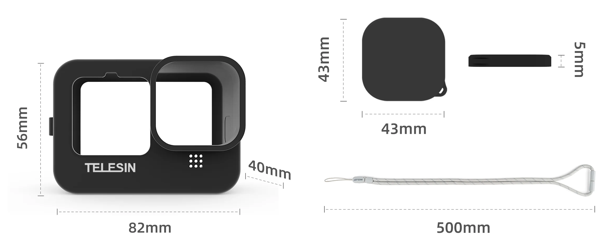 כיסוי סיליקון שחור TELESIN GP-HER-041 עבור מצלמות אקסטרים GoPro