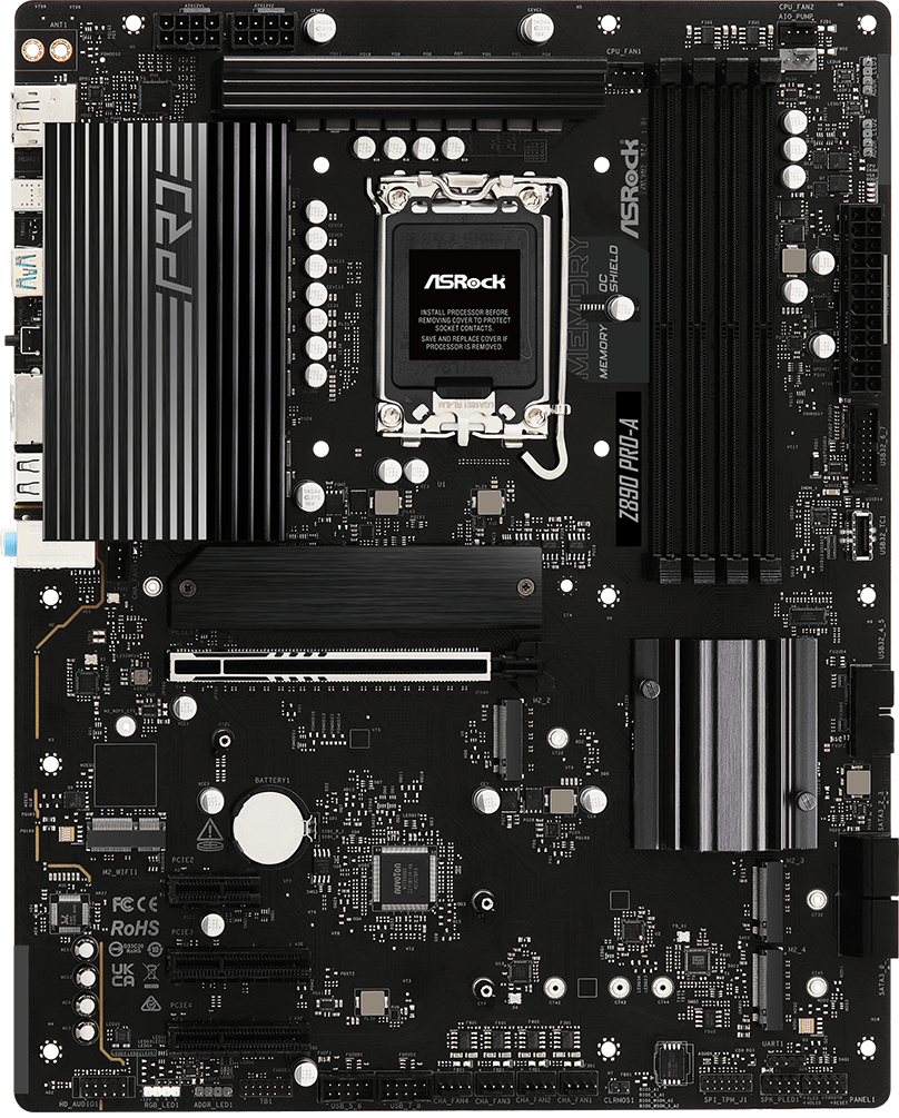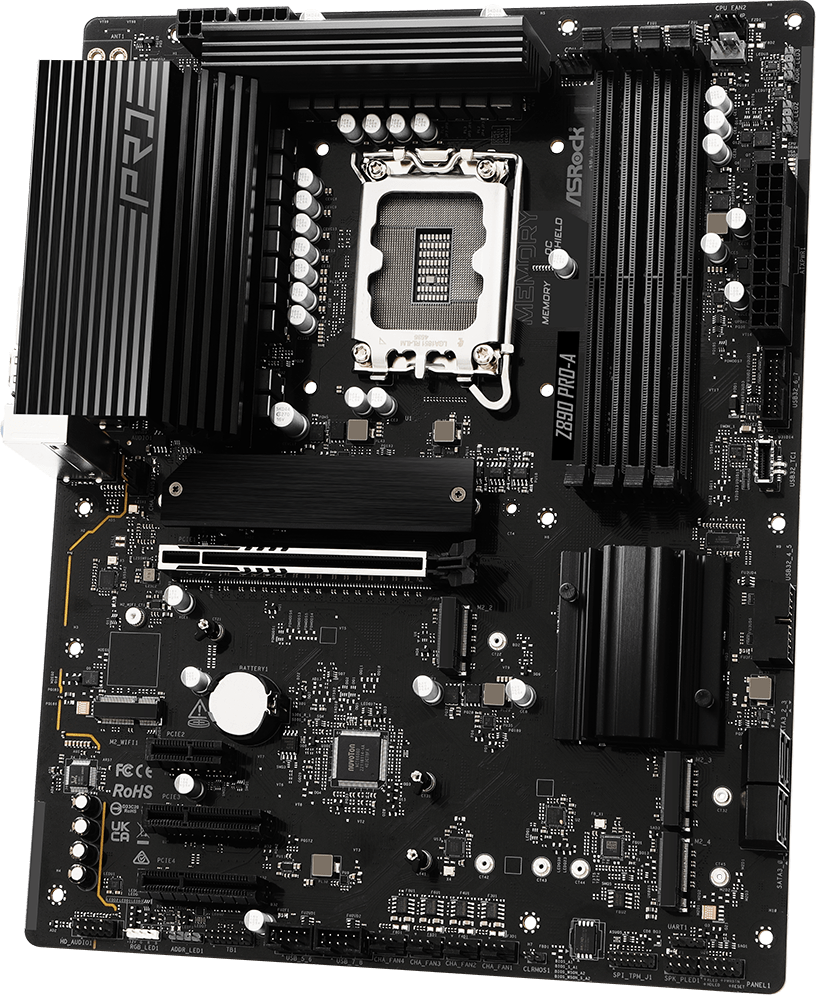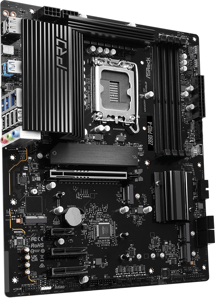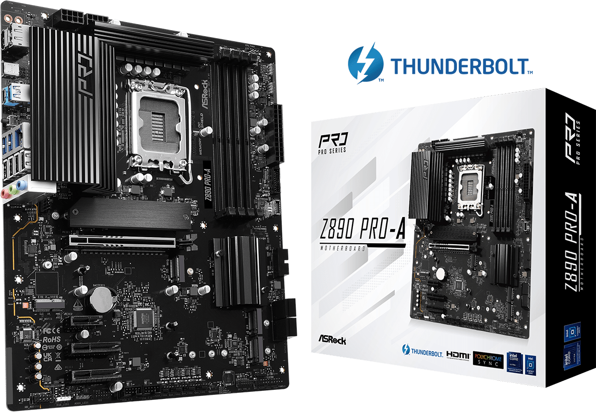 לוח אם ASRock Z890 Pro-A, ערכת שבבים Z890, תושבת 1851 למעבדי Intel Core Ultra דור 2, כולל כרטיס רשת קווי Dragon RTL8125BG 2.5Gb, חיבורי Thunderbolt 4 ו- USB3.2 20Gbps