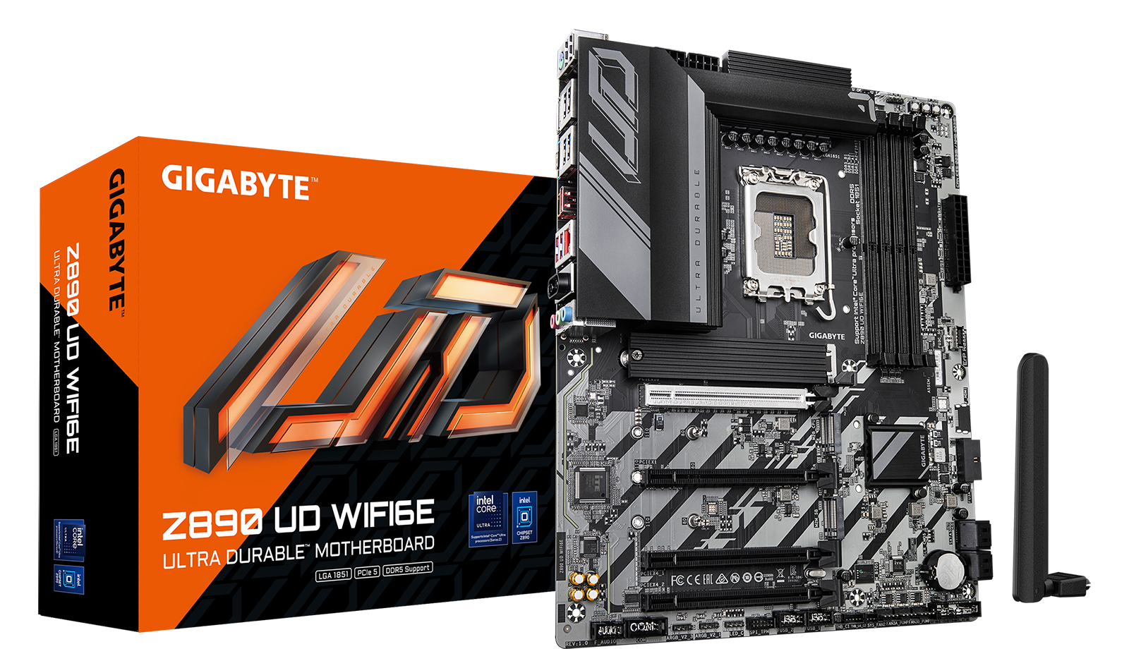 לוח אם Gigabyte Z890 UD WIFI6E, ערכת שבבים Z890, תושבת 1851 למעבדי Intel Core Ultra דור 2, קישוריות Wi-Fi 6E ו-Bluetooth 5.3, כרטיס רשת קווי Realtek 2.5Gb Ethernet, חיבורי USB4 (USB-C) ו- USB 10Gbps