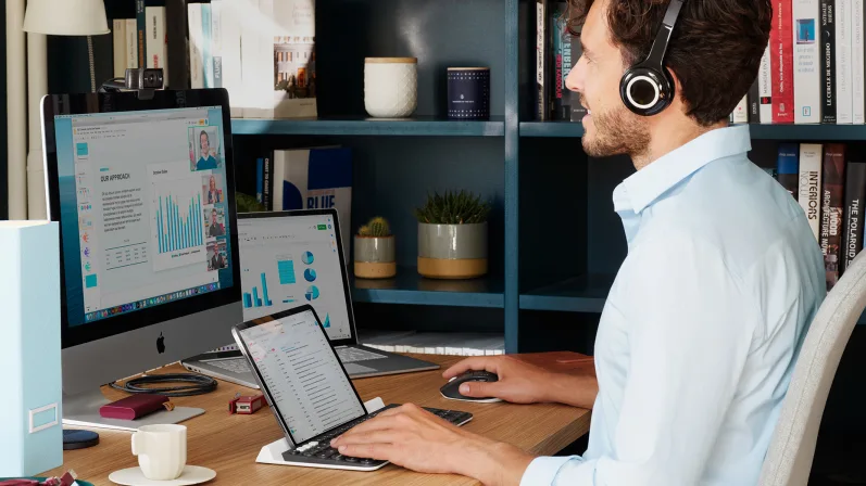 השתמש ב-M720 כדי לעבוד בצורה חלקה בין מחשבים, מחשבים ניידים, טאבלטים. חבר את העכבר לעד שלושה מכשירים שונים, ועבור ביניהם באמצעות לחצן Easy-Switch™. השתמש ב-Flow™ כדי לעוף בין המשימות שלך: העבר בצורה חלקה טקסט, תמונות וקבצים בין מחשבים - ומערכות הפעלה - בעזרת העתקה והדבקה פשוטה.