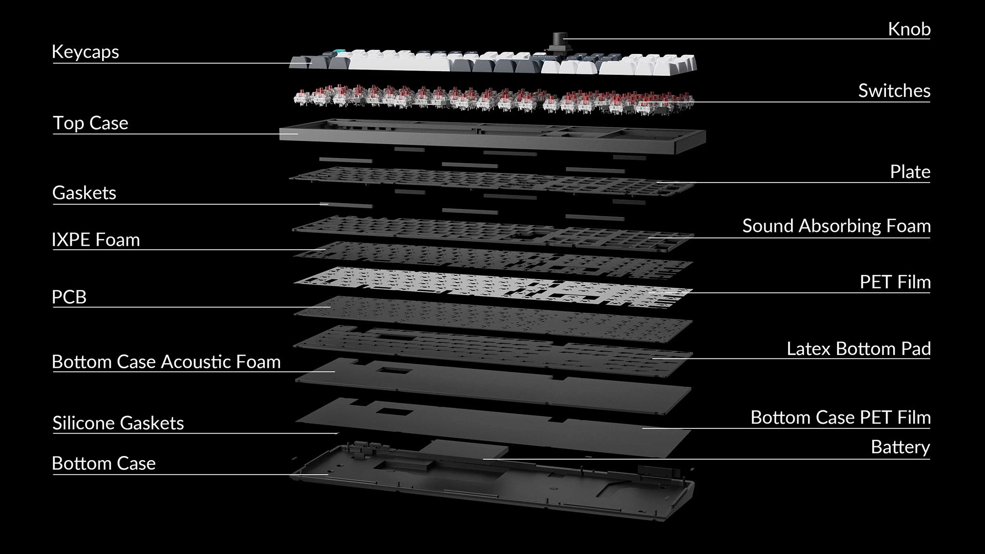 המקלדת מצוידת בקצף אקוסטי איכותי מסוג IXPE, PET ולטקס, שמשפר את חוויית ההקלדה והופך כל הקשה לחוויה מהנה ונעימה.
