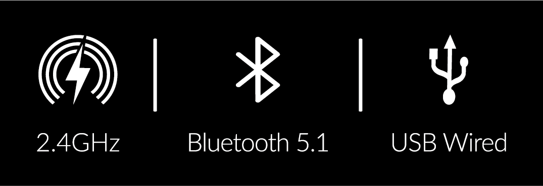 עם חיבור אלחוטי בטכנולוגיית 2.4GHz, ה- M6 מספק זמן תגובה נמוך במיוחד ותגובה מהירה למשחקים ולמשרד. הוא מציע גם חיבור יציב ב- Bluetooth 5.1 למגוון נוסף של אפשרויות חיבור אלחוטי.