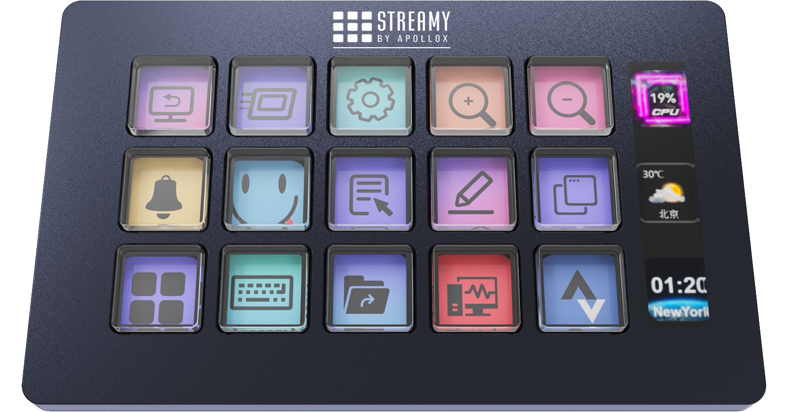 15 מקשי LCD מוכנים להפעיל פעולות בלתי מוגבלות. פעולה טקטילית בלחיצה אחת מאפשרת לך לשלוט באפליקציות, לשחרר פוסטים חברתיים, לכוון אודיו, להשתיק את המיקרופון שלך, להדליק אורות ועוד הרבה יותר, בעוד פידבק ויזואלי מאשר כל פקודה שלך.