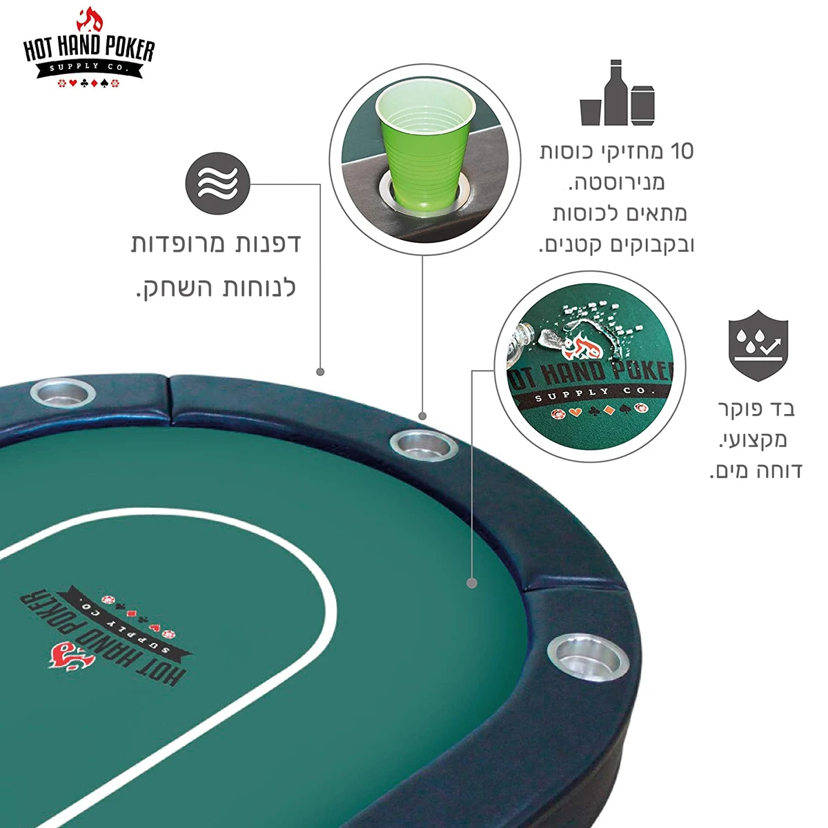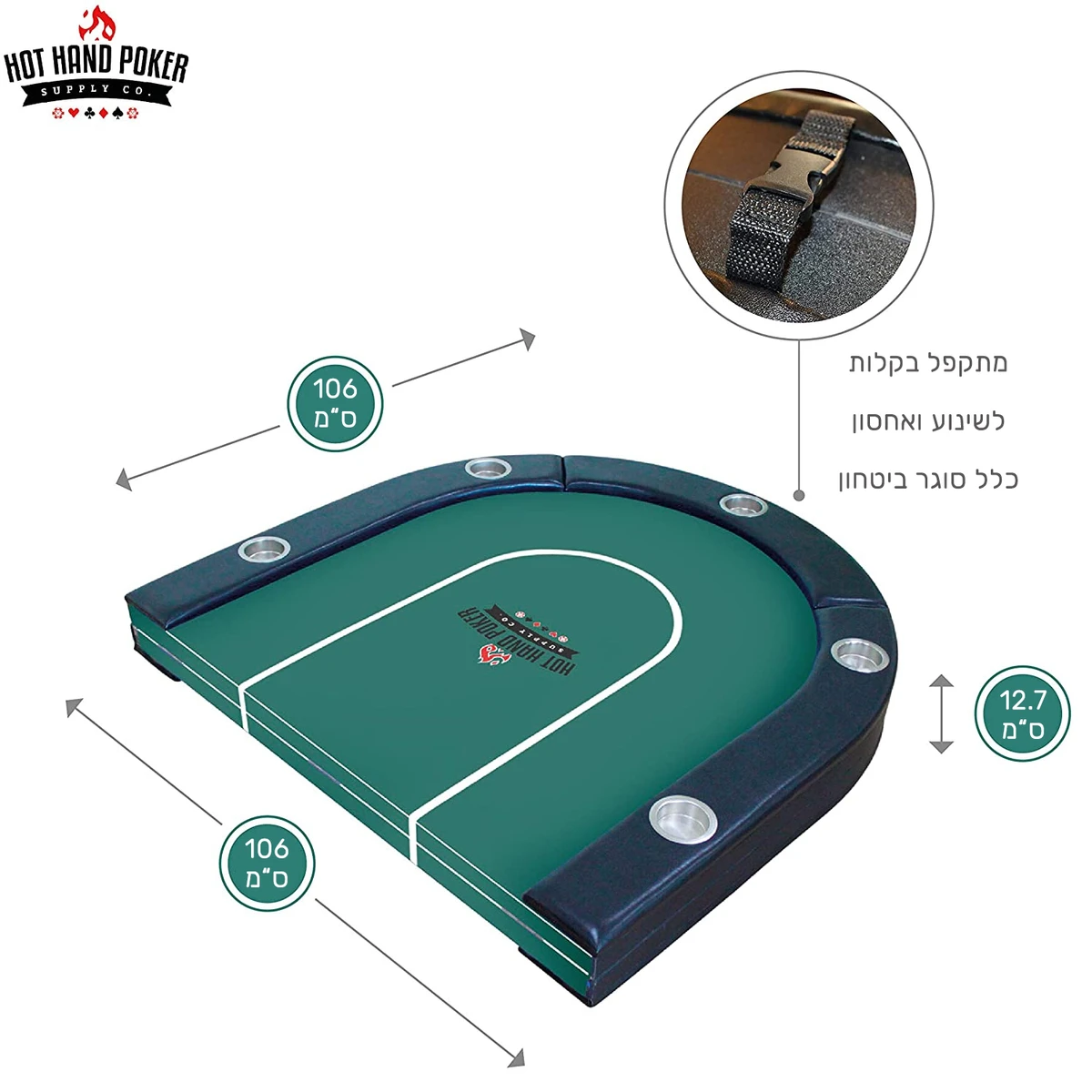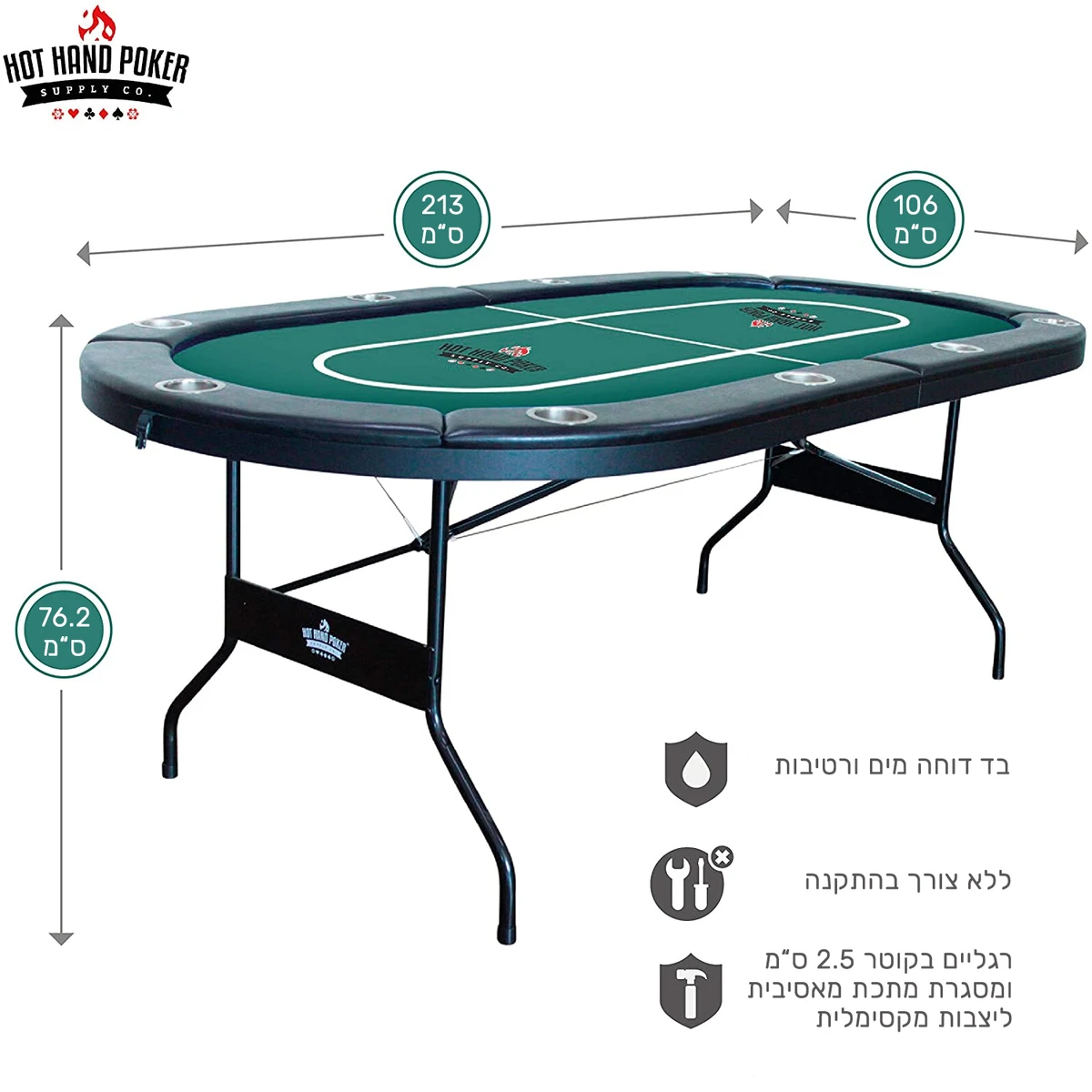 שולחן פוקר אליפטי מתקפל 213 ס"מ Hot Hand Poker סופרליג בצבע שחור - משלוח חינם
