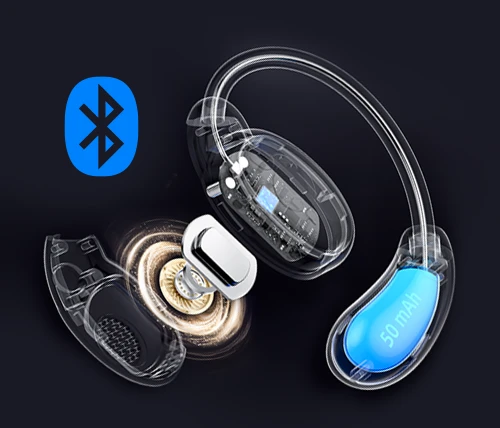 עיצוב מותאם לקימור האוזן עם וו מתכוונן, נוח לאורך היום.