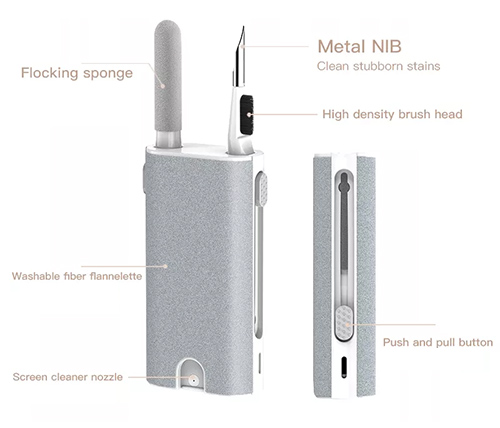 סט ניקוי רב תכליתי – 5 פעולות במוצר אחד לניקוי מסך הטלפון הסלולרי והאוזניות