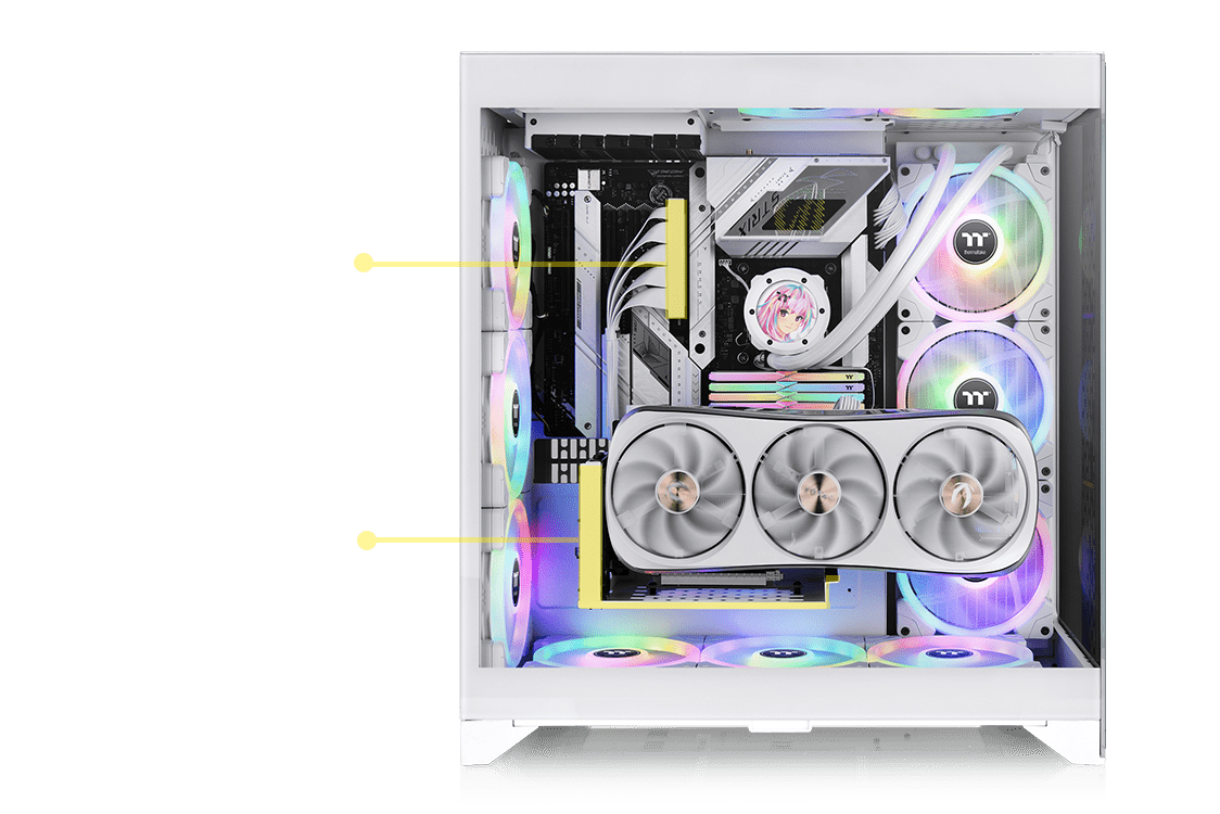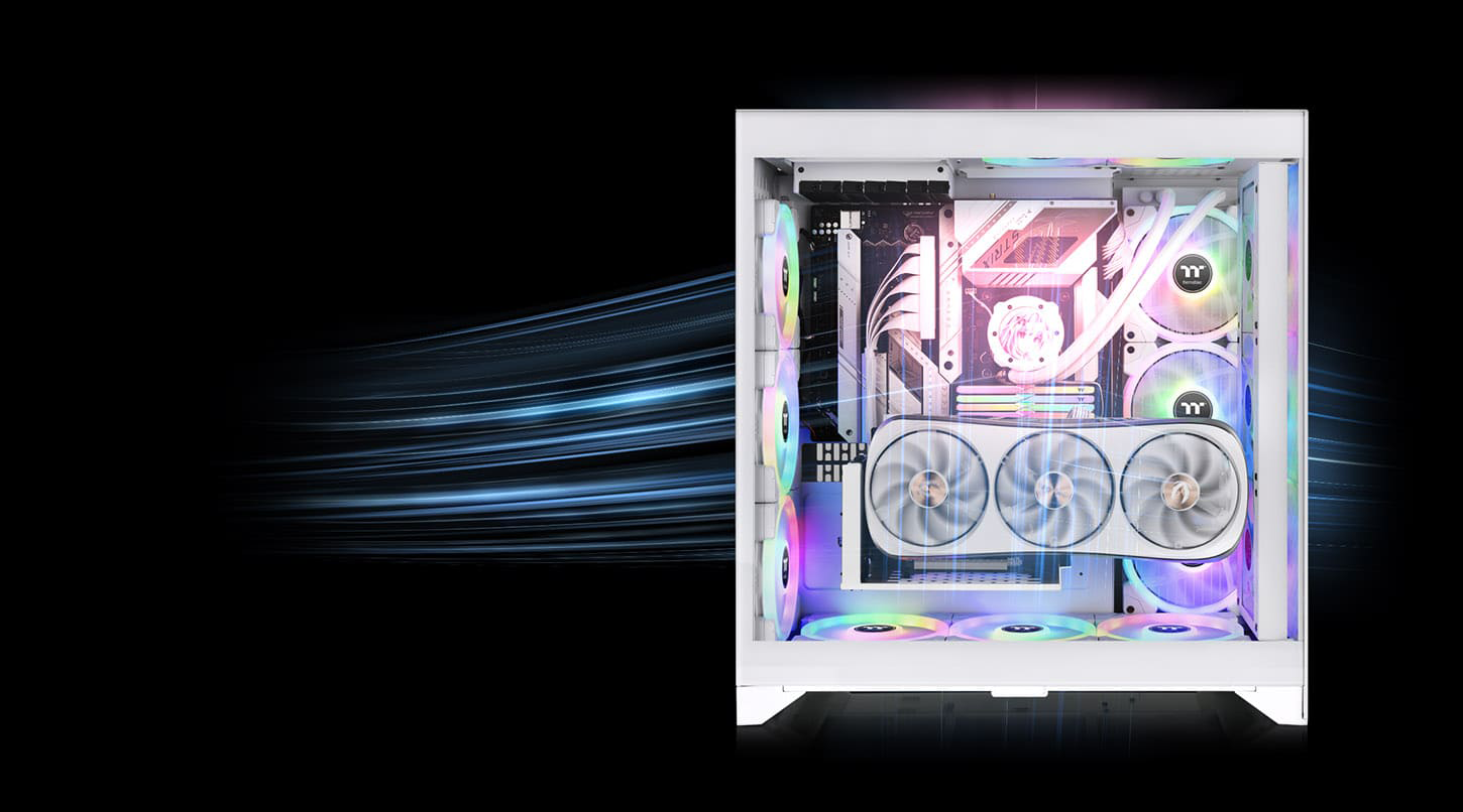 ניתן להתקין רדיאטורים בהתאמה אישית באורך של עד 420 מ"מ בחזית, מאחור, למטה ובצד לוח האם, לגמישות מלאה בבניית מערך קירור אופטימלי.