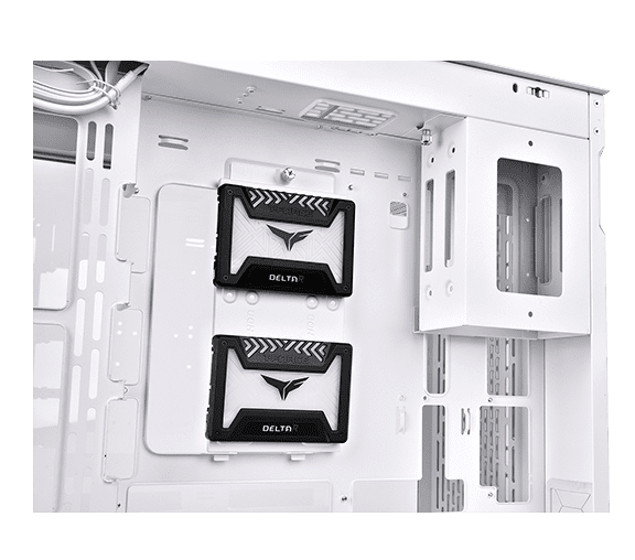 עד 14 מאווררי 120 מ"מ או 12 מאווררי 140 מ"מ, ותמיכה ברדיאטורים של 360/420 מ"מ בחזית, אחור וצד לוח האם. התושבות המובנות מקלות על התקנה והתאמה אישית של כל רכיב קירור שתבחר.