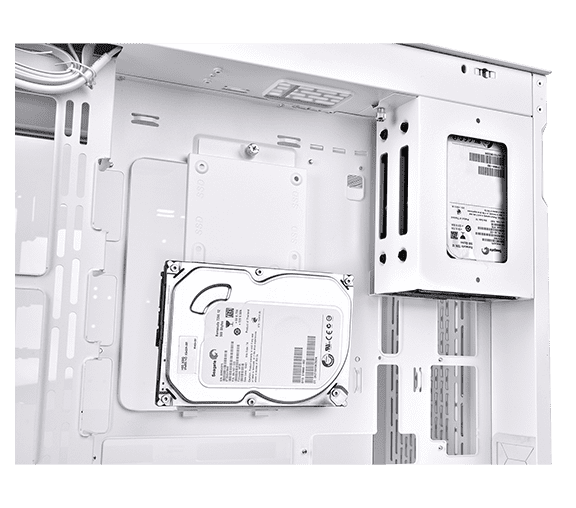 בצד ימין של המארז ניתן להתקין עד שני כונני 3.5” בכלוב הכוננים וכונן 3.5” נוסף או שני כונני 2.5” על גבי פלטת הכונן