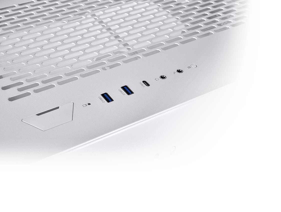 בחלקו העליון של המארז תמצא שני חיבורי USB 3.0, חיבור USB 3.2 Gen2 Type-C וכניסת אודיו – לנגישות נוחה ומיידית.