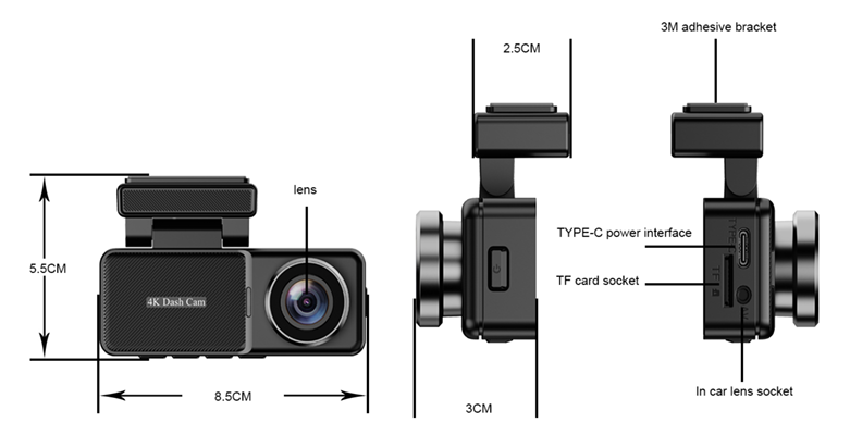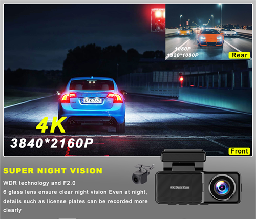 מצלמת דרך לרכב 4K דאש קאם אלחוטית עם WI-FI כולל מצלמה 1K אחורית MIZUKI Dash Cam B301