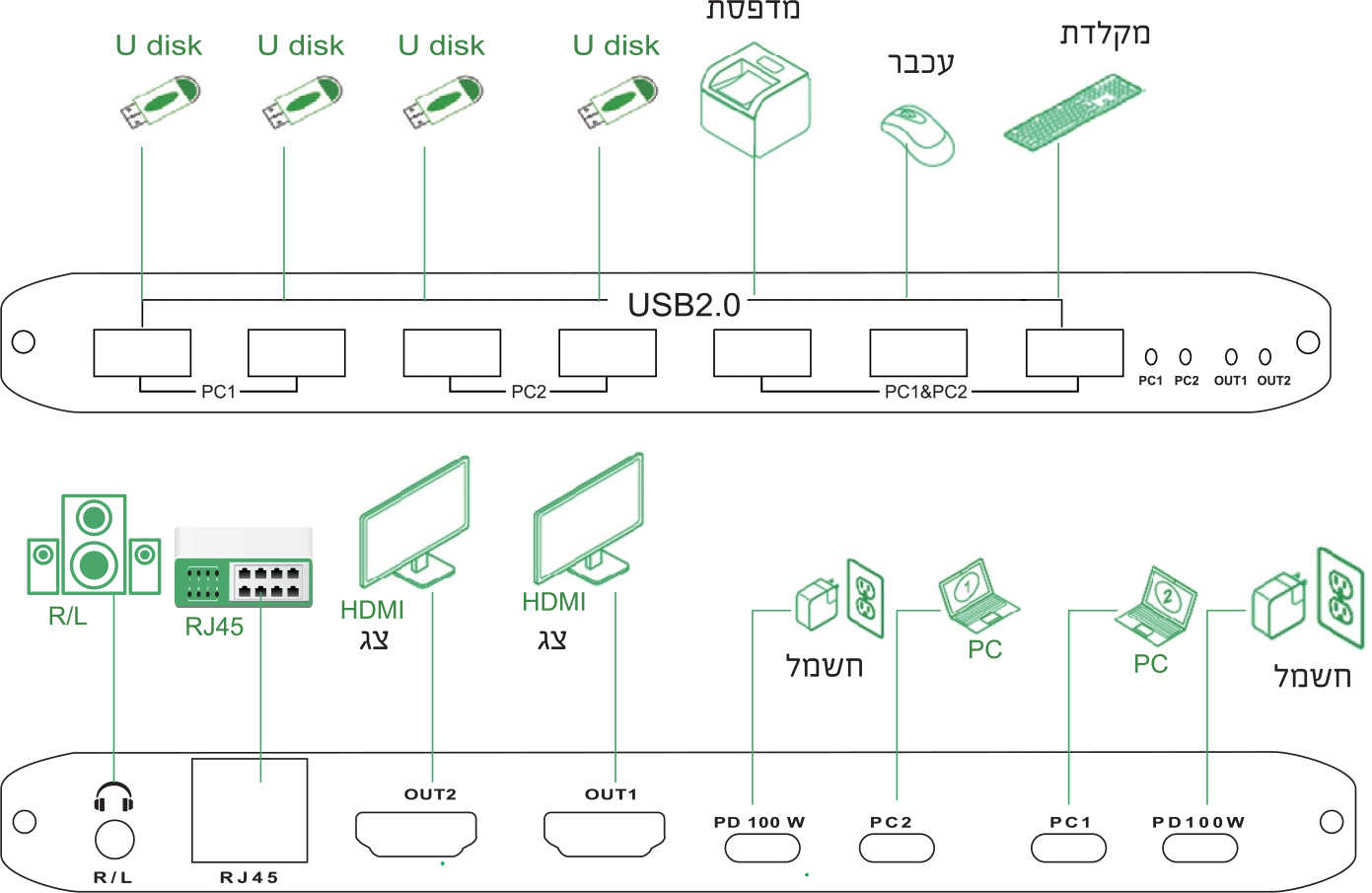 מתג KVM ל-2 מחשבים Ivory Connect KVM201K3 תומך 4K כולל חיבור רשת