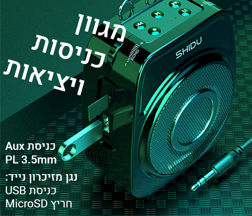 חגורת הגברה למורים ומדריכים עבור העברת הדרכות כוללת מיקרופון מדונה חוטי - SHIDU Portable Speaker 20W