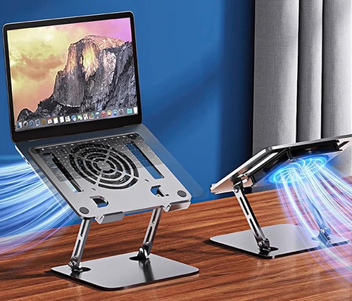 מעמד ארגונומי עם משטח קירור למחשב נייד - עד 17 אינץ', כסוף - Ivory Peripherals