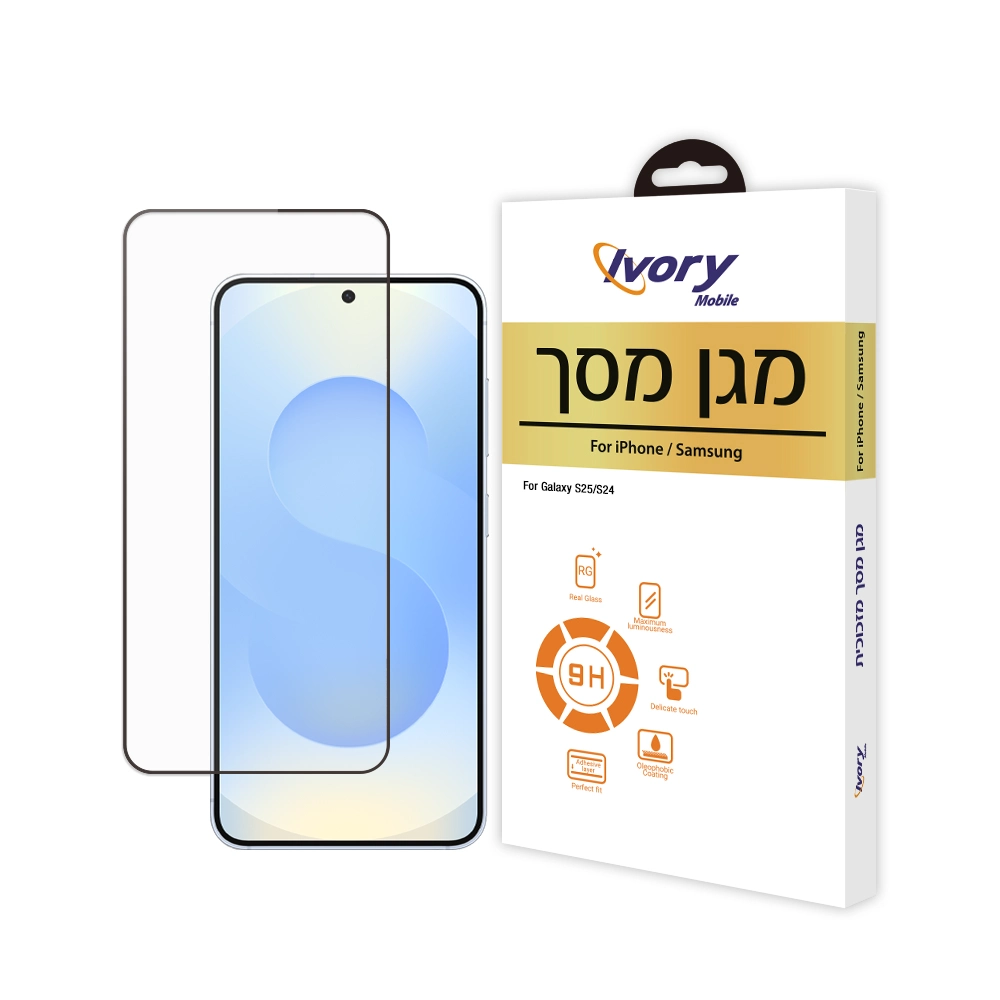 מגן מסך זכוכית לסמסונג גלקסי Samsung Galaxy S25 מבית Ivory Mobile
