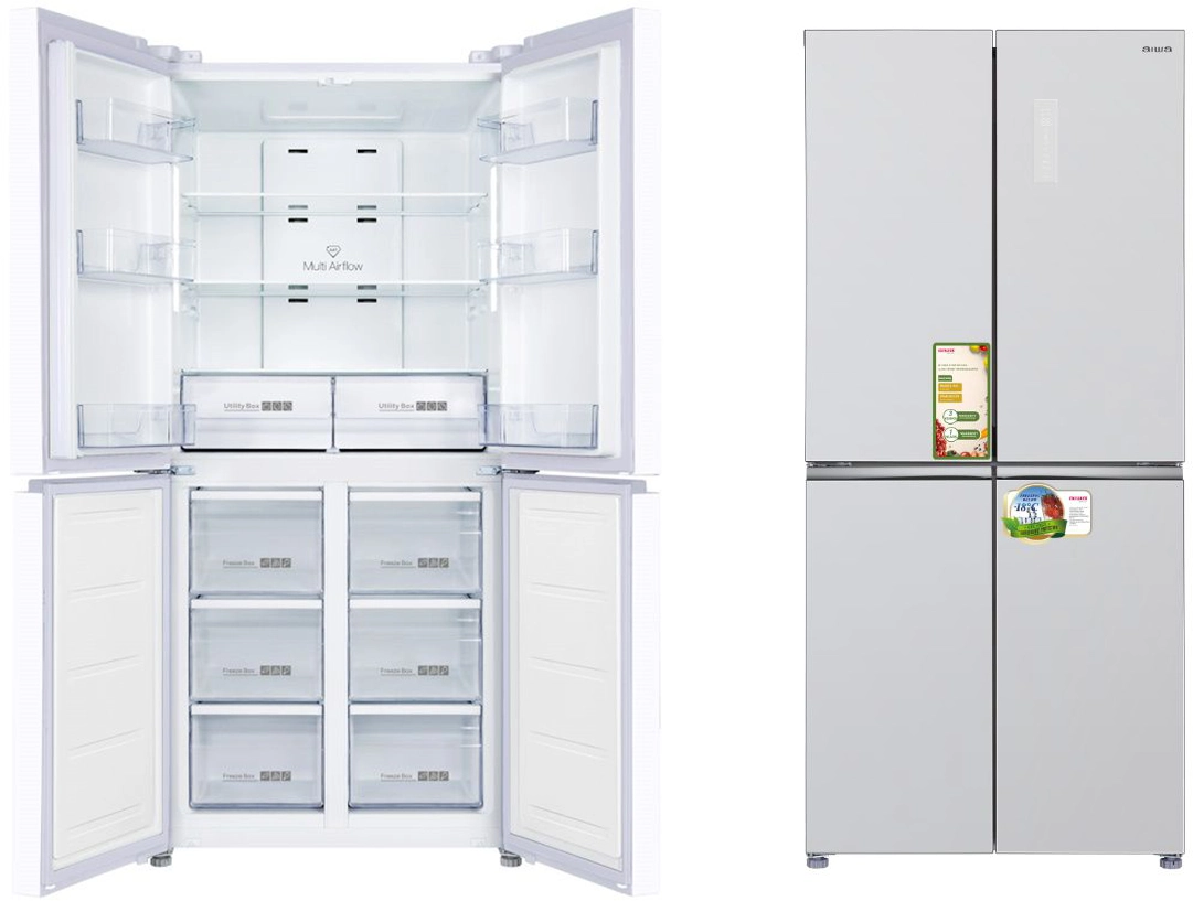 מקרר 4 דלתות מקפיא תחתון 470 ליטר זכוכית סילבר aiwa NF 6500 – משלוח חינם