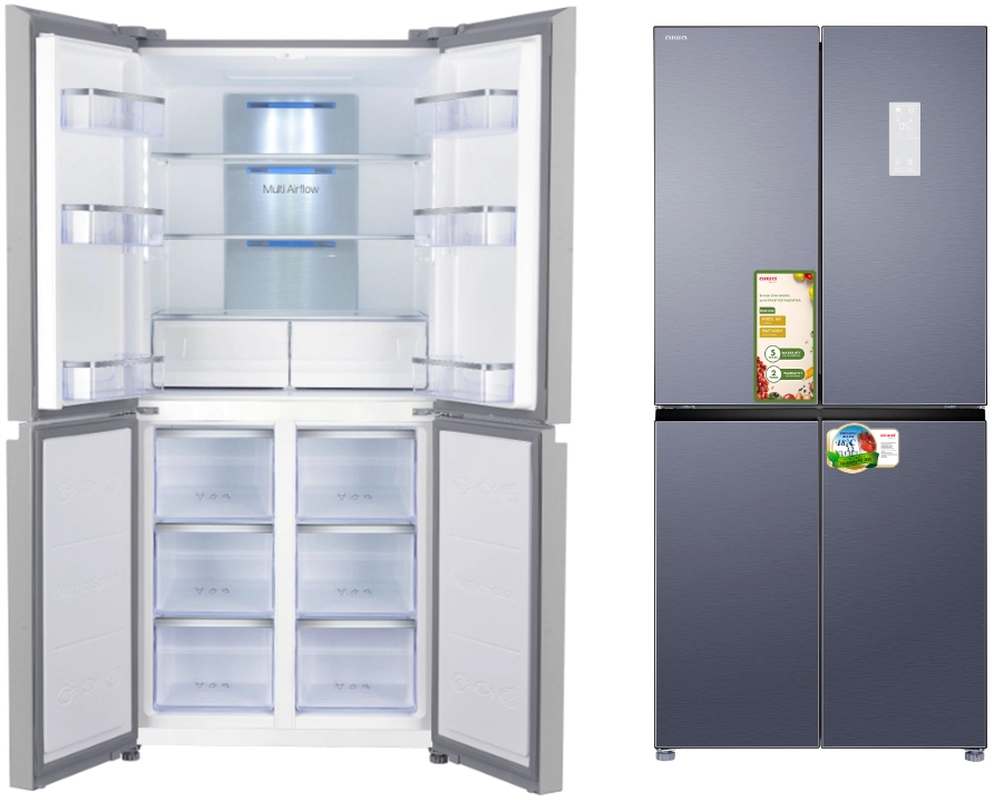 מקרר 4 דלתות 466 ליטר מקפיא תחתון אפור שחור 6500 aiwa AI-460WEXA-EG - משלוח חינם