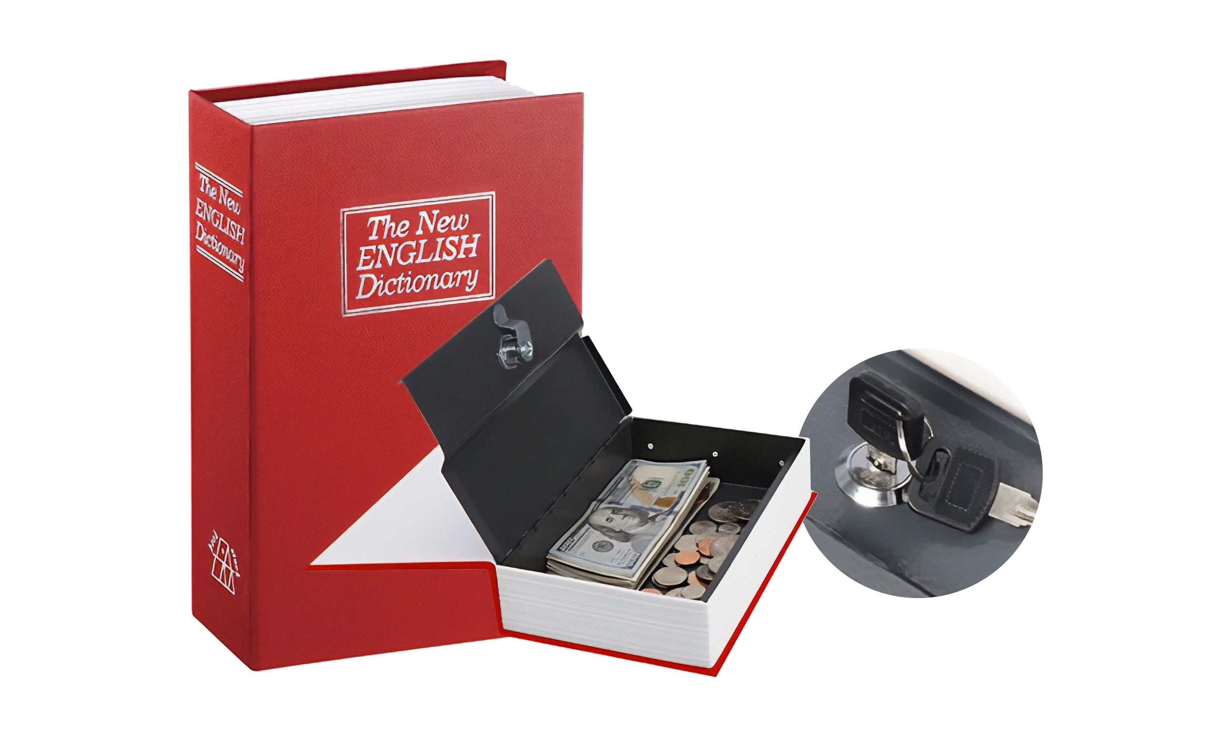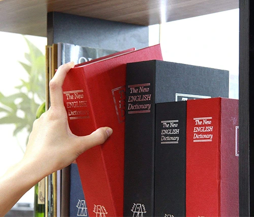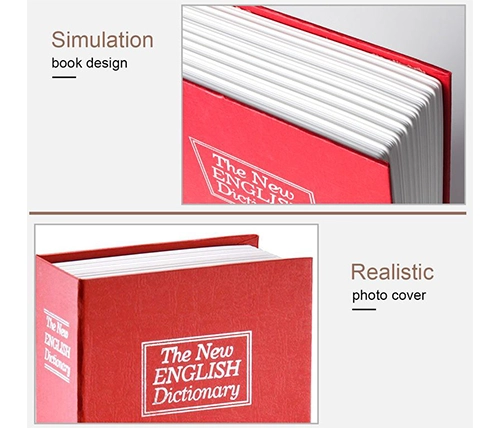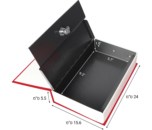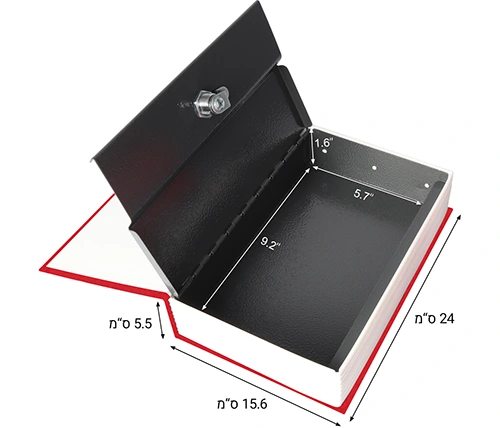 מתאימה לאחסון כסף מזומן ודברי ערך, עם שני מפתחות. ממש נראית כמו ספר אמיתי, כמו כן, לבית ולמשרד, וניתן להסתיר בין שאר הספרים על המדף.