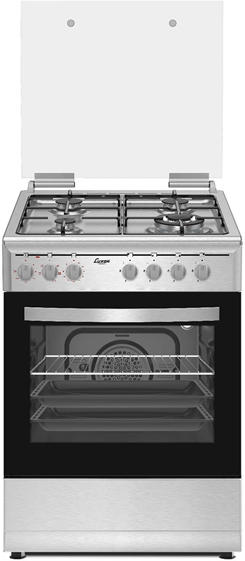 תנור משולב כיריים גז 4 להבות 60x60 נירוסטה עם מכסה זכוכית Luxor