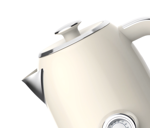 הקומקום מעוצב בהשראת סגנון רטרו קלאסי עם קווים מעוגלים וגימור מוקפד, ההופכים אותו לפריט דקורטיבי אלגנטי בכל חלל. הוא משדר תחכום ונוכחות אסתטית שמעלים את רמת העיצוב של המטבח. הקומקום זמין בשני גוונים נצחיים – שחור עמוק המעניק מראה דרמטי ואלגנטי, ו־קרם בהיר המוסיף רכות וחום עיצובי. כך תוכלו לבחור את הגוון שמשתלב באופן מושלם עם סגנון הבית שלכם.