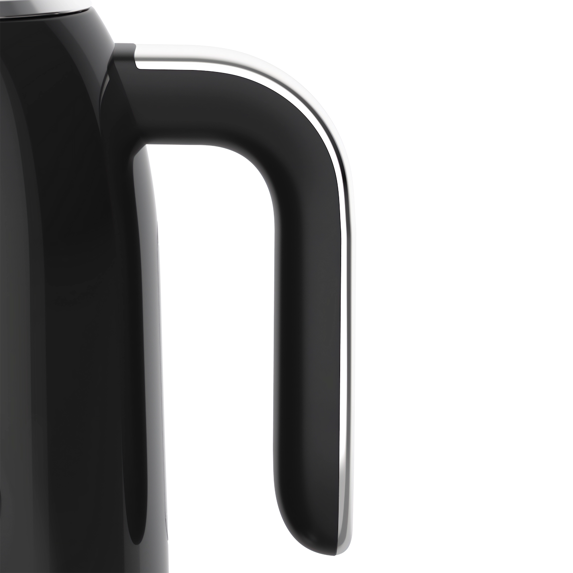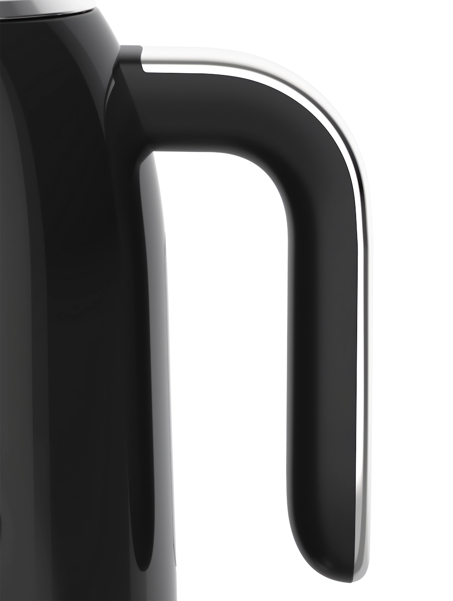 הקומקום מצויד בידית מעוצבת בקווים מעוגלים, המשלבת מראה אלגנטי עם נוחות שימוש מקסימלית. הידית מצופה בחומר מבודד חום, המבטיח אחיזה יציבה ובטוחה גם בזמן מזיגה מיידית לאחר ההרתחה. בזכות הארגונומיה המדויקת, כל הרמה ומזיגה הופכות לתנועה טבעית, אלגנטית וחלקה – בדיוק כפי שמצופה ממוצר פרימיום.