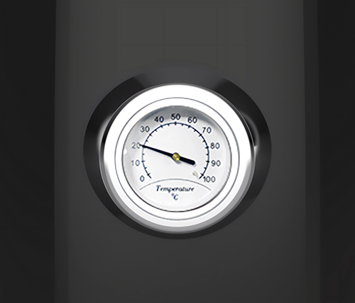 הקומקום מצויד במד חום אנלוגי מובנה, המוסיף טאץ’ רטרו ייחודי ומשדר תחכום עיצובי. לצד יופיו האסתטי, המד משלב פונקציונליות חכמה עם מראה וינטג’ יוקרתי ההופך כל שימוש לחוויה אלגנטית.