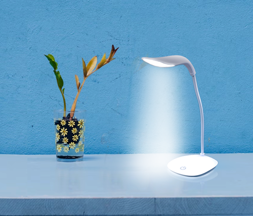 מנורת שולחן קלת משקל בצבע לבן אלגנטי, מתאימה לבית ולמשרד.