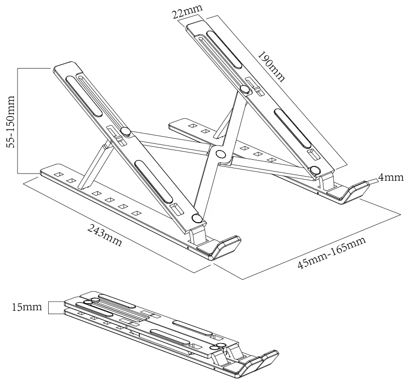מעמד למחשב נייד וטאבלט 10 עד 18 אינץ' מתקפל מאלומיניום בצבע כסוף Ivory Peripherals D620