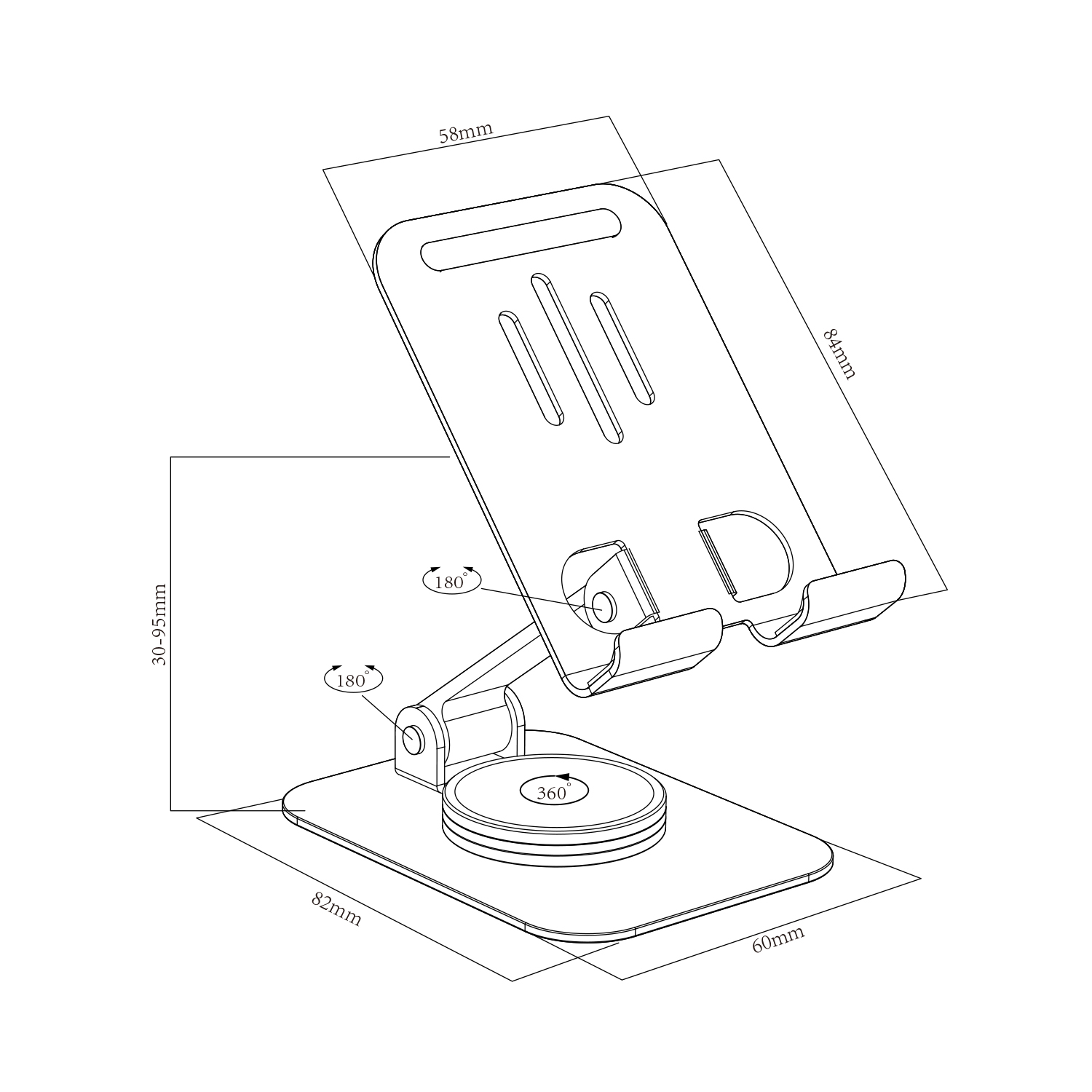 מעמד לטלפון סלולרי / טאבלט עד 10 אינץ' מתכוונן אוניברסלי מאלומיניום כסוף Ivory Peripherals D650