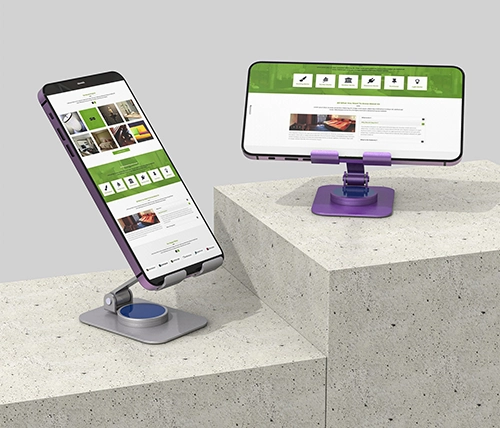 מחזיק טלפון עמיד ואלגנטי המיוצר מסגסוגת אלומיניום, מספק תמיכה יציבה לסמארטפון שלך