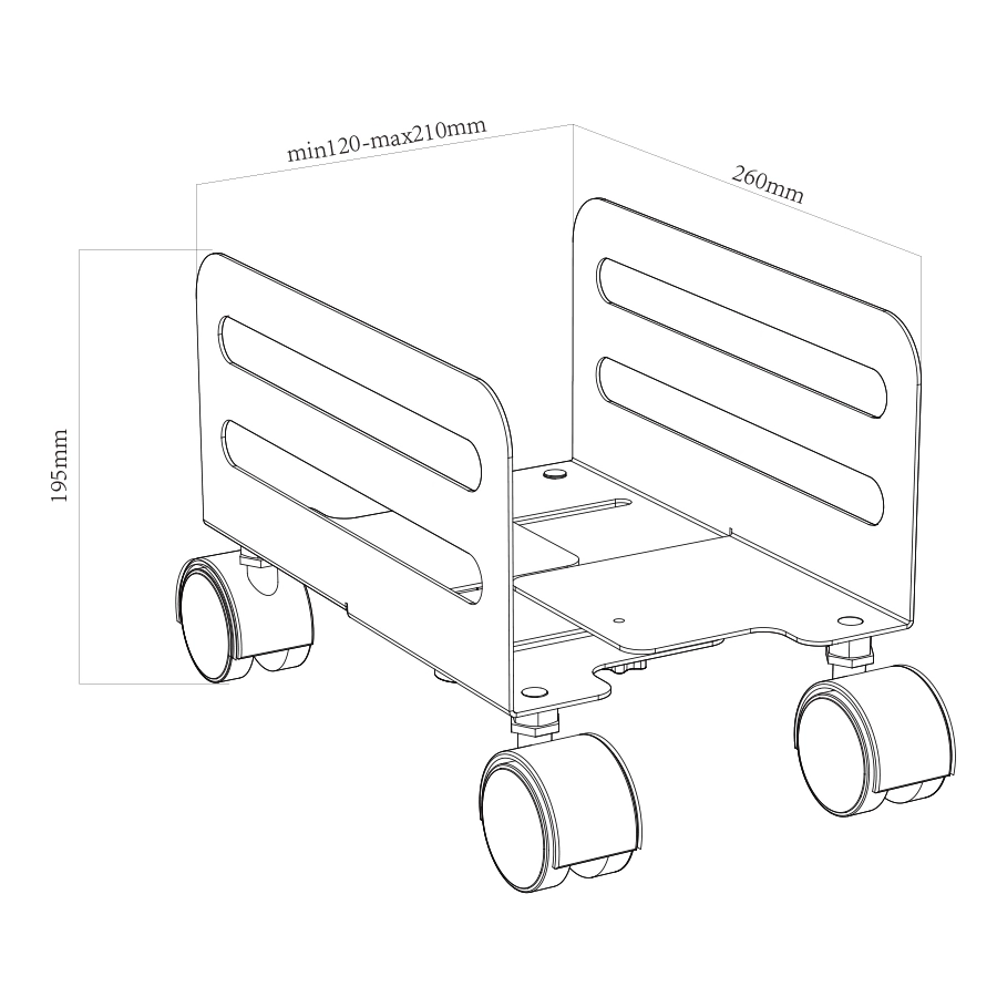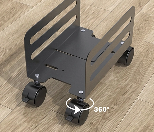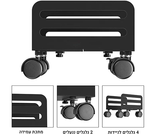המעמד כולל 4 גלגלים (2 ניתנים לנעילה) לסיבוב של 360 מעלות, לניידות חלקה ונוחה בכל כיוון.