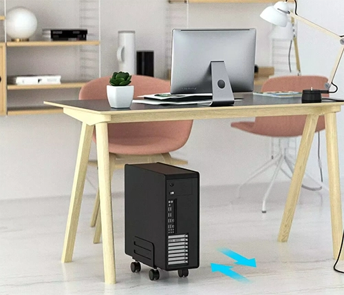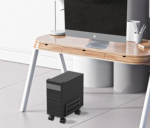 המעמד מרים את המחשב מהרצפה, שומר על המחשב ומפנה מקום נוסף בשולחן העבודה שלכם.