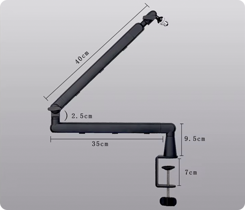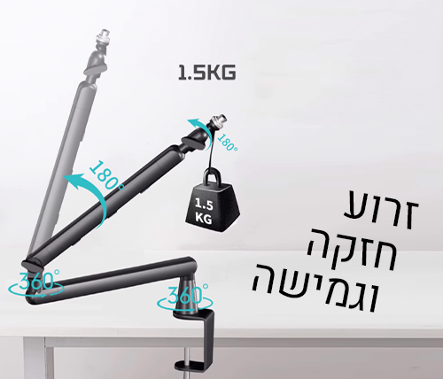זרוע למיקרופון מתכווננת Ivory Sound GAZ-NB10 – סיבוב 360°, מתאימה להקלטות, פודקאסטים ואולפנים