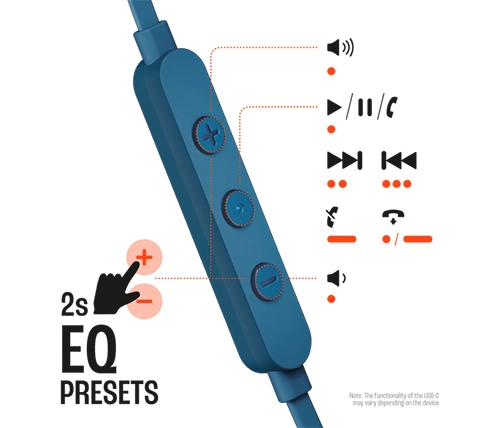 ❖ בקרת הגדרות EQ – ניתן לבחור ברירת מחדל, בס או ווקאל כדי למצוא את הצליל המתאים לטעמכם באמצעות השלט עם 3 לחצנים על הכבל