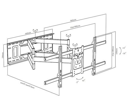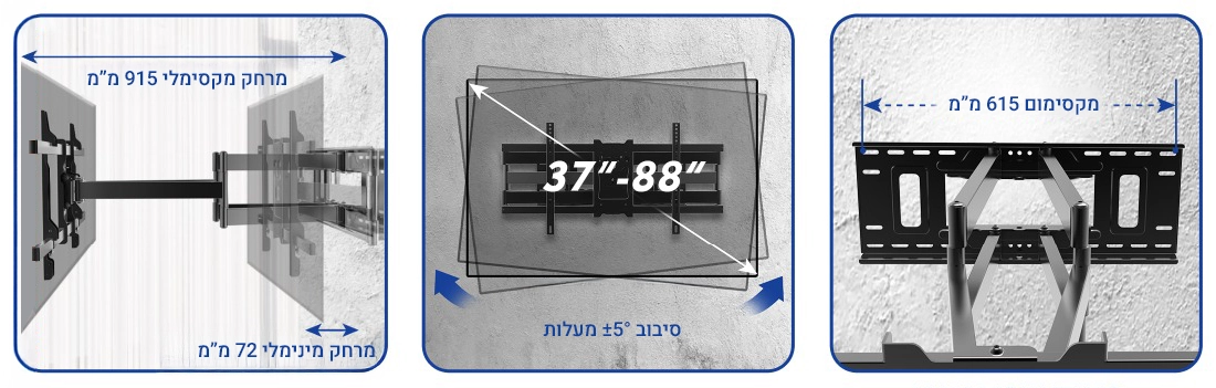מתאים למסכים בגודל 37 עד 88 אינץ' ועד משקל 65 ק"ג