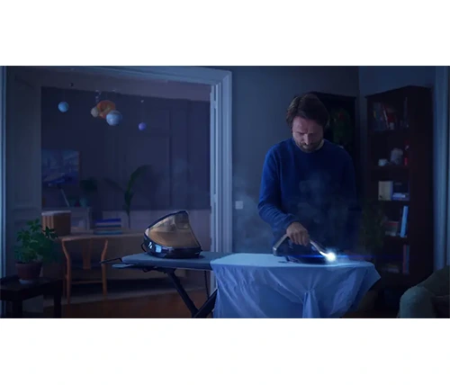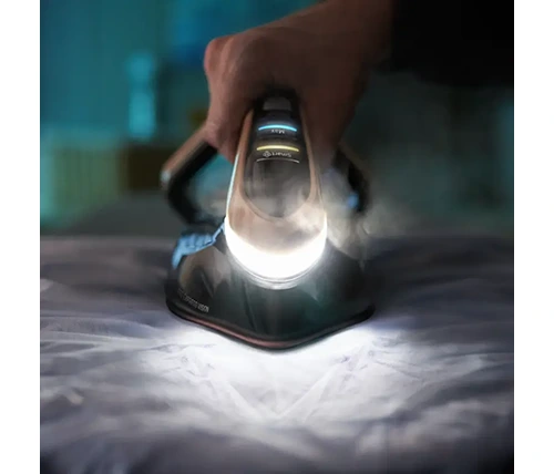 נורית לד בקצה המגהץ נדלקת אוטומטית כאשר המגהץ במצב אופקי