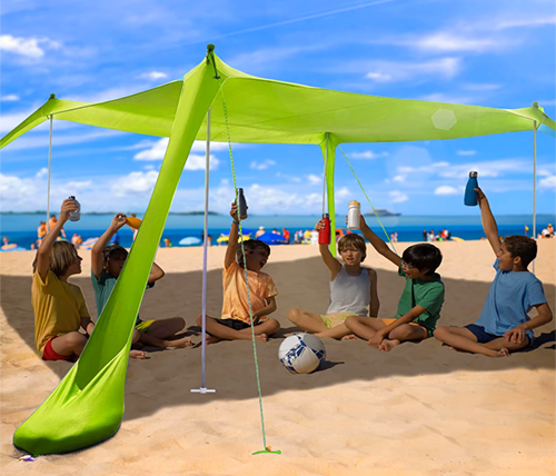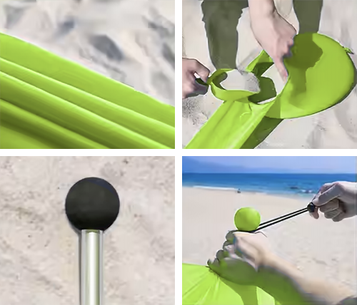 בד לייקרה עמיד, כיסים חזקים לחול, מוטות אלומיניום איכותיים ורצועות בד אלסטיות עבור קשירת המוטות לצילייה בקלות.