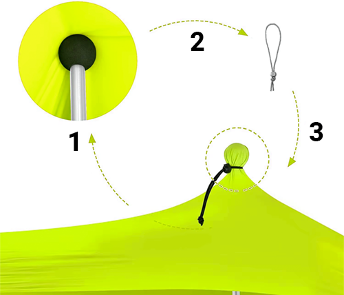 מומלץ להציב את המוט ולמשוך את שכית החול בזווית בדומה לתמונה עבור יציבות מעולה.