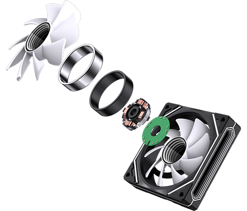 מאוורר הקירור IVORY GAMING GT120 מגיע בצבעים שחור ולבן לבחירה – שני גוונים אלגנטיים המשתלבים בקלות בעיצוב של כל מארז. הוא כולל תאורת ARGB כפולה, הן בטבעת הפנימית והן בחיצונית, ליצירת מראה דינמי, עשיר ומרשים במיוחד. התאורה ניתנת לשליטה מלאה ולסנכרון עם לוחות אם תואמים או בקרי תאורה ייעודיים, ומתאימה במיוחד לגיימרים, יוצרי תוכן ובוני מערכות שמעוניינים בנראות מקצועית וייחודית שמבליטה את המחשב מכל זווית.